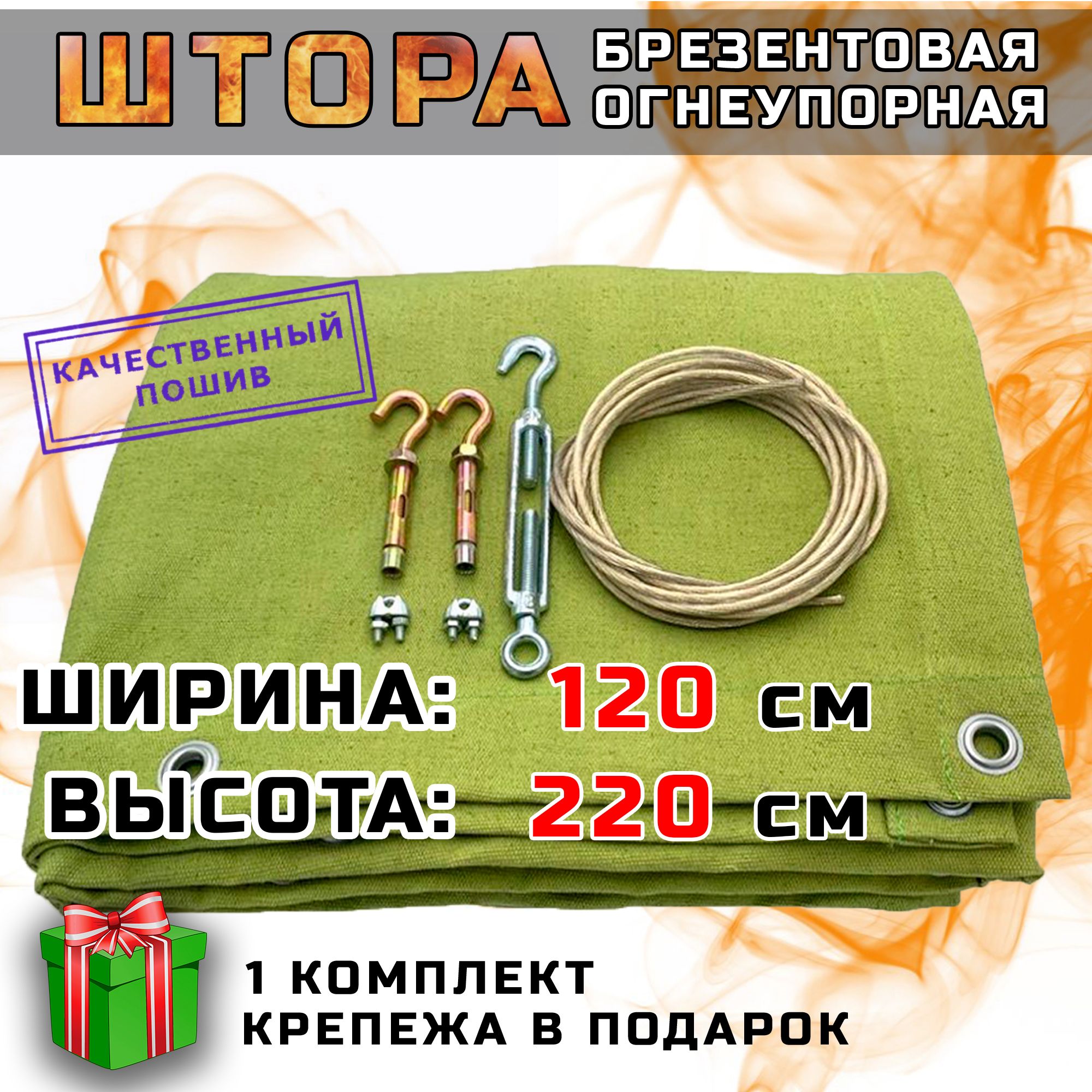 Краткое описание «Брезентовая штора огнеупорная для гаража, усиленная, высота 220 см, ширина 120см»